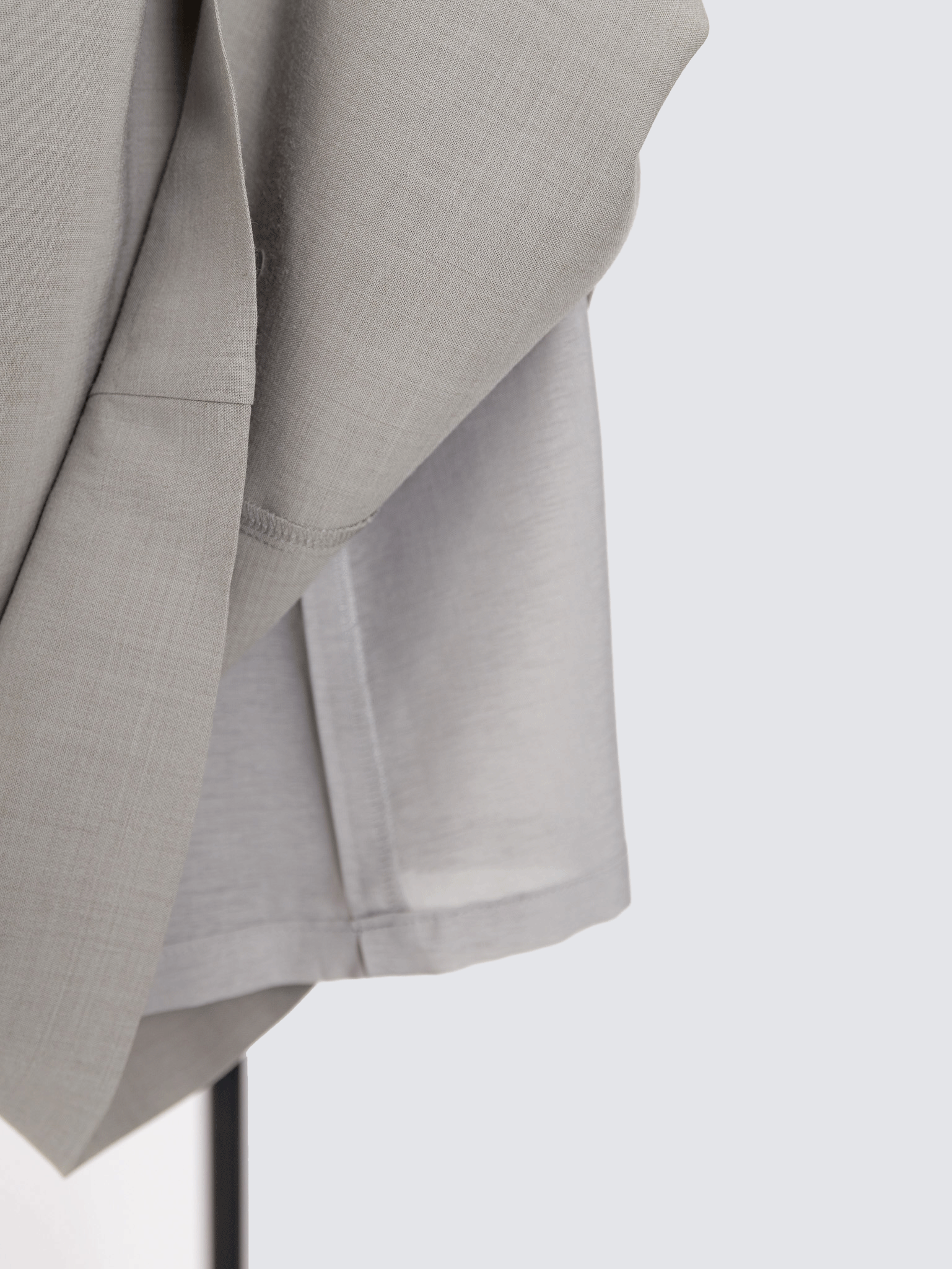 まるで薄手ウールのような質感のさらっとした生地は、見た目の上質さと取り扱いのしやすさを両立しており、肌離れがよくシーズンを問わない快適な着用感が特徴です