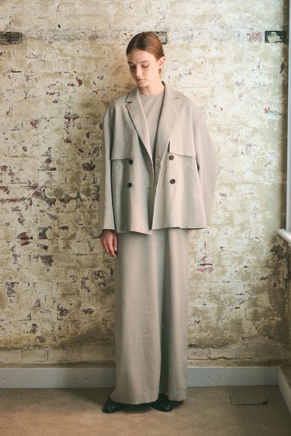 同じ生地を使用したCity Air trench jacketとセットアップにしていただく事で、入学式などのオケージョンシーンやお仕事にも幅広くお使いいただくことが可能です