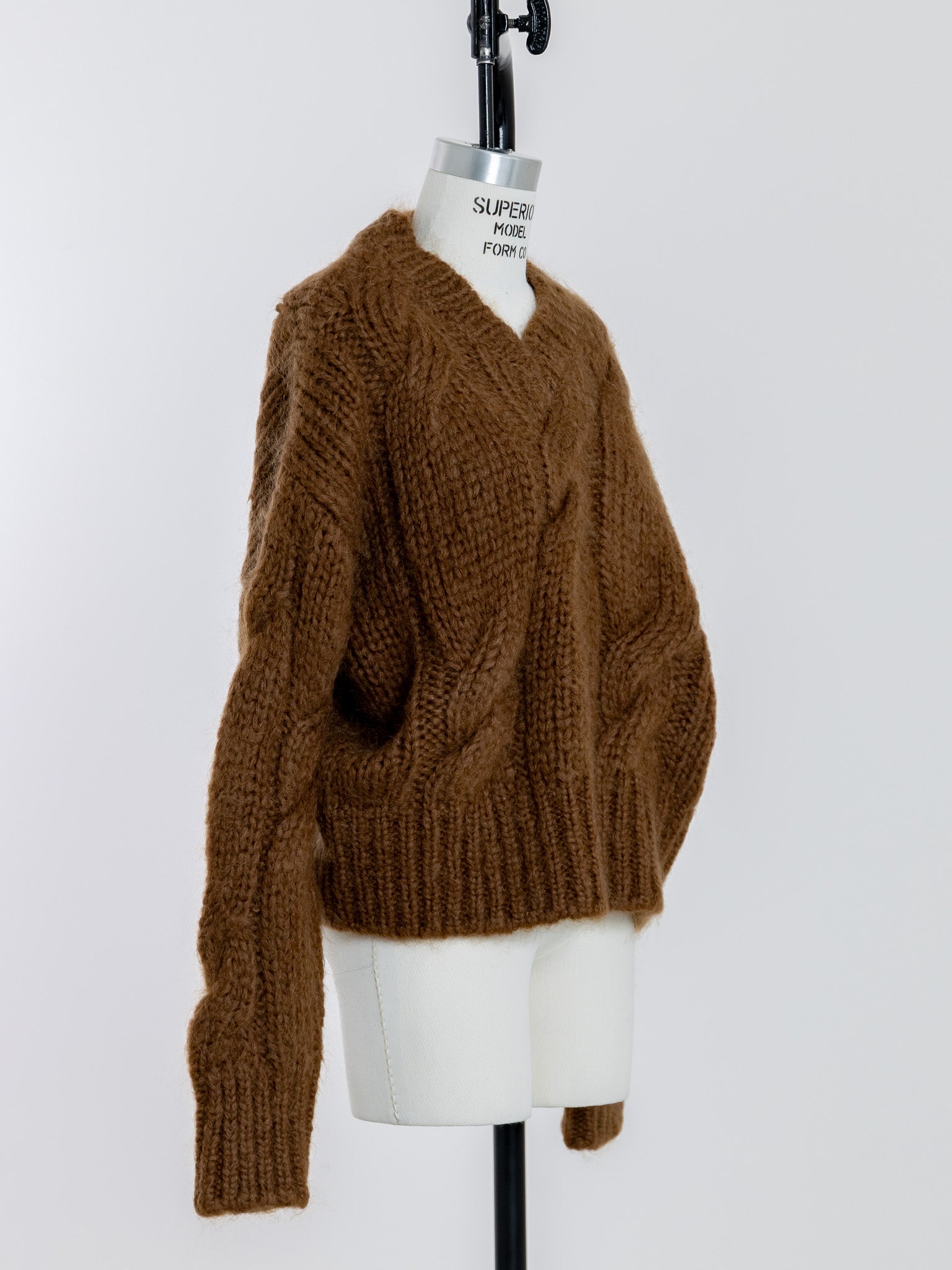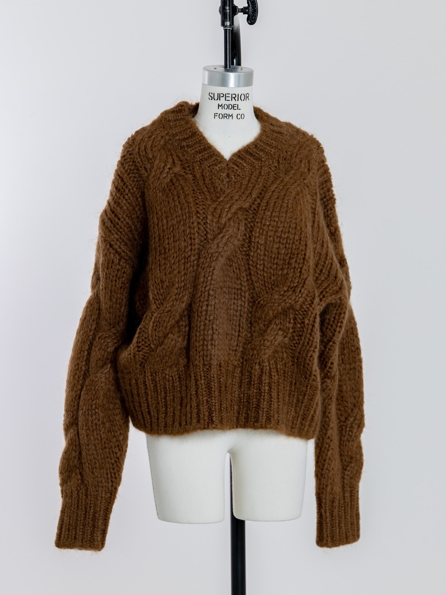 一目一目に温もりを感じるようなケーブルニットに仕上げました。