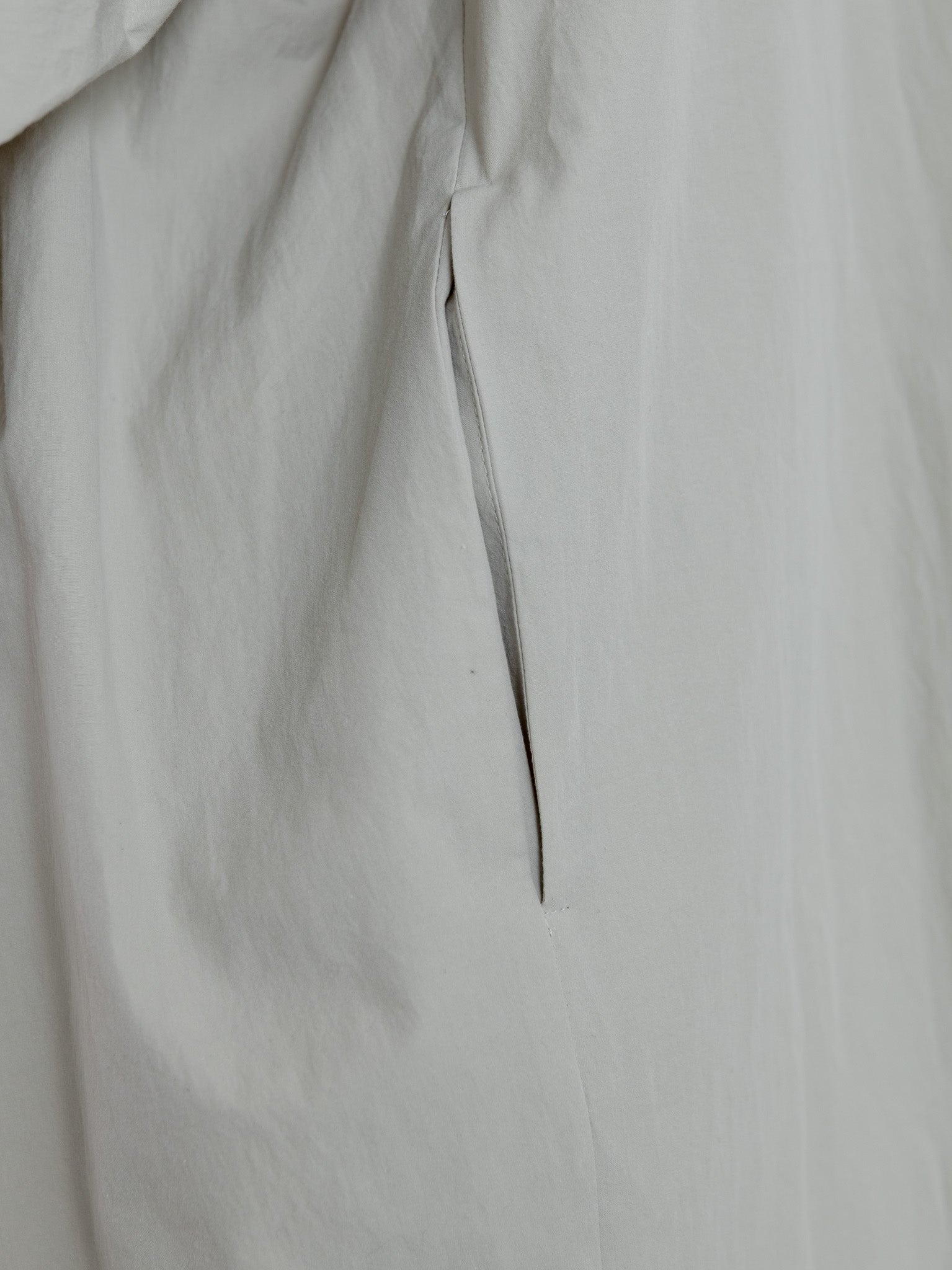カーブを描く裾デザインと前後差のある着丈が、動きのあるシルエットを演出します。この着丈を活かし、春先には羽織としてのスタイリングもおすすめです。
