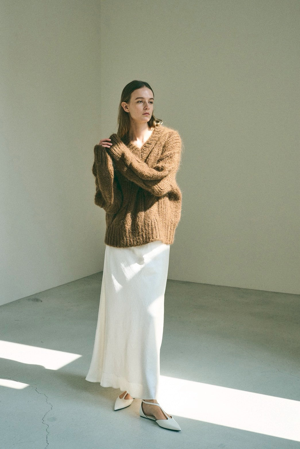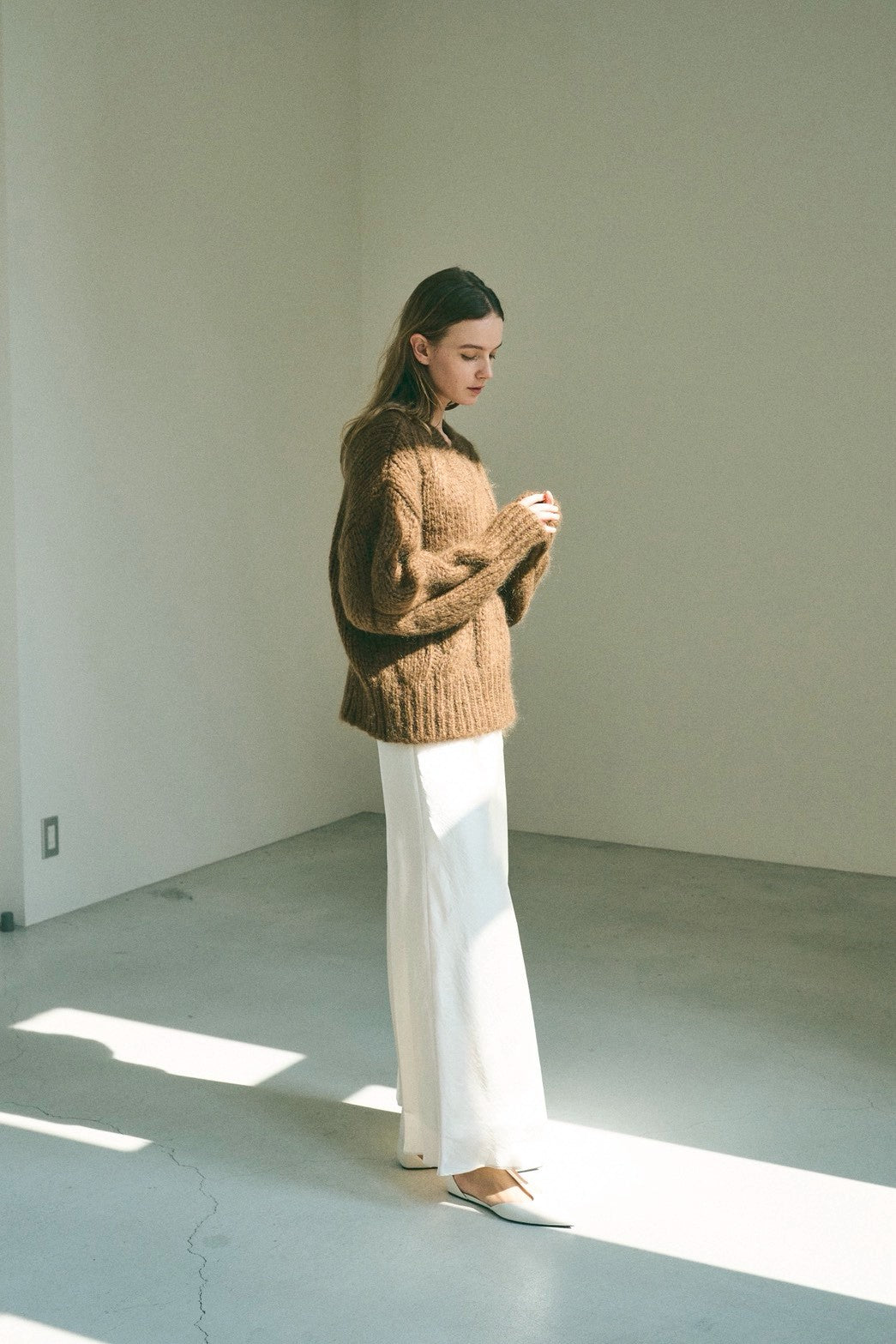 ラインは緩やかなAラインですが、着用する事で落ち感が出て、ストレートに近い美しいシルエットになるようなパターンにしています